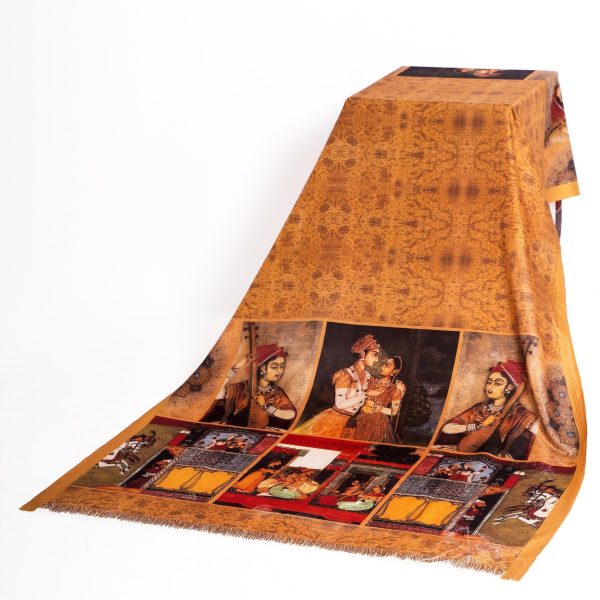 Gender:Â Womenn Category:Â Accessoriesn Outfit Type:Â Dupattan Color Type:Â Mustardn Fabric:Â Tussar Silkn Work Technique:Â Printedn Additional Description:Â Artful hand-painted designs re-imagined through digital printing, blending heritage