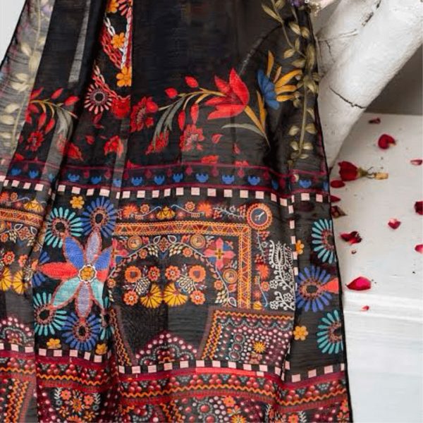 Gender:Â Womenn Category:Â Accessoriesn Outfit Type:Â Dupattan Color Type:Â Blackn Fabric:Â Manaarn Work Technique:Â Digital Printedn Additional Description:Â Zaymal has the perfect dupattas for you to choose