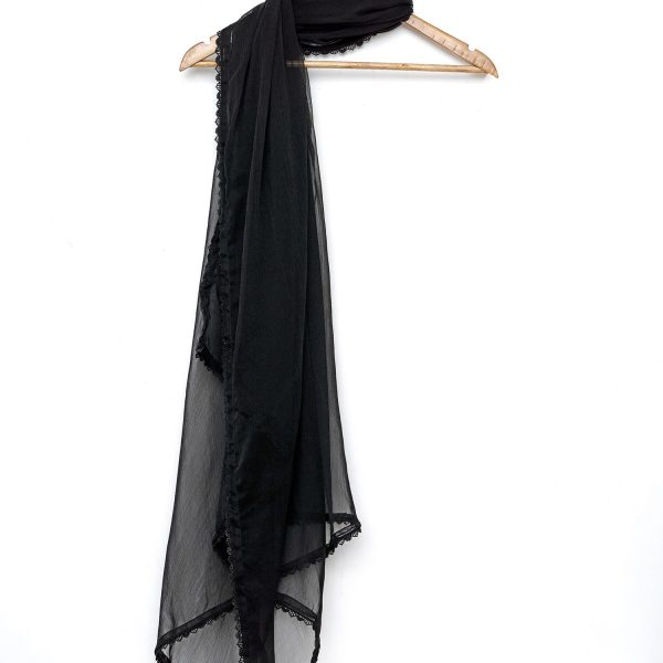 Gender:Â Womenn Category:Â Accessoriesn Outfit Type:Â Dupattan Color Type:Â Whiten Fabric:Â Chiffonn Work Technique:Â Laceworkn Additional Description:Â Length: 2.5 Yard , wide 1.25 yardnPlain Chiffon DupattannDiscover elegance
