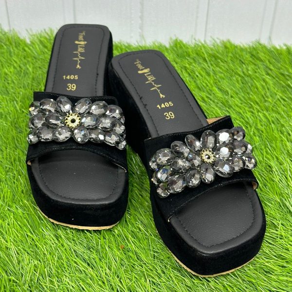 Gender:Â Womenn Category:Â Footwearn Outfit Type:Â Wedgesn Color Type:Â Blackn Sole Material:Â Leathern Top Material:Â Velvetn Additional Description:Â BOX HEEL BLACK Heel Height – 3 inchesn Disclaimer:Â Actual