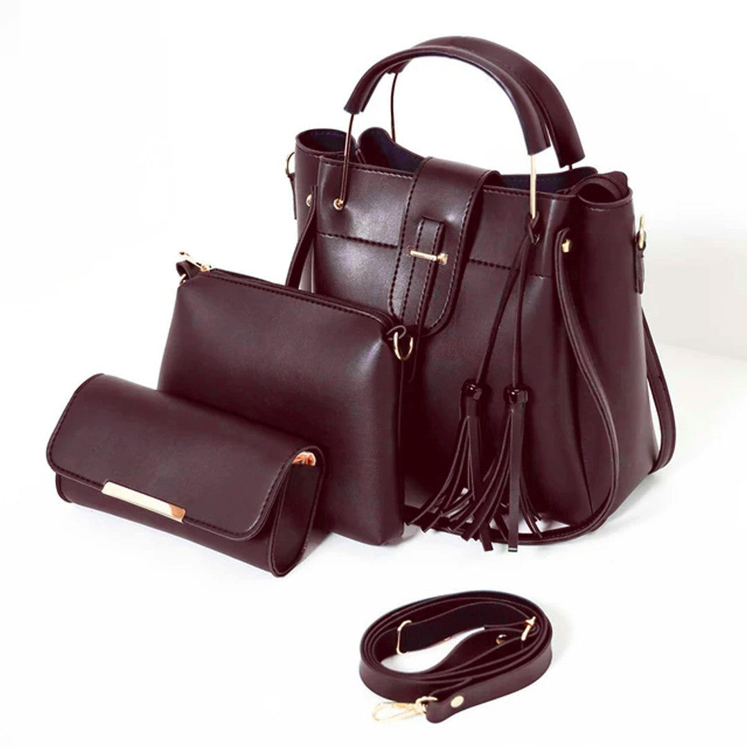 Additional Description:Â Package Include: 3 Pcs bags as the picture show (Large Bag + Medium Shoulder Bag + Wallet). nnStructure: Big Tote/Shoulder Bag: Large capacity can hold books, umbrellas, iPad, purses, and other things comfortably.nnMaterial: High-Quality Faux Leathern