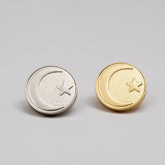 Additional Description:Â The Gold Chand Sitara Lapel Pin is a striking accessory crafted from high-quality metal. This elegant pin features a delicate crescent moon and star motif, symbolizing both celestial beauty and timeless style. Its polished finish adds a touch of sophistication to any attire, making it perfect for both formal and casual occasions. This lapel pin is not only a fashion statement but also a symbol of grace and elegance, ideal for those who appreciate fine craftsmanship and understated luxury.n