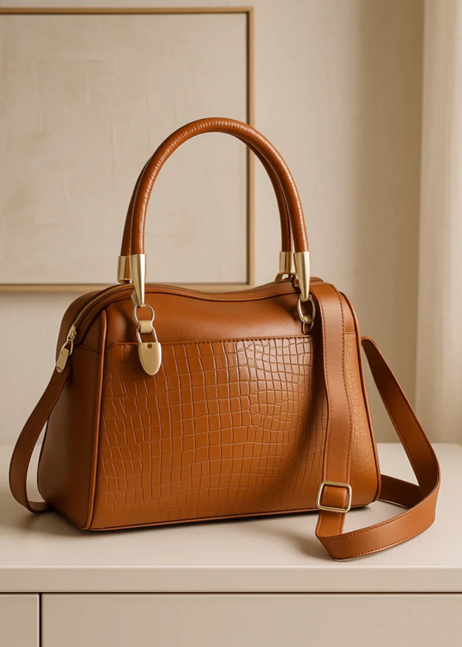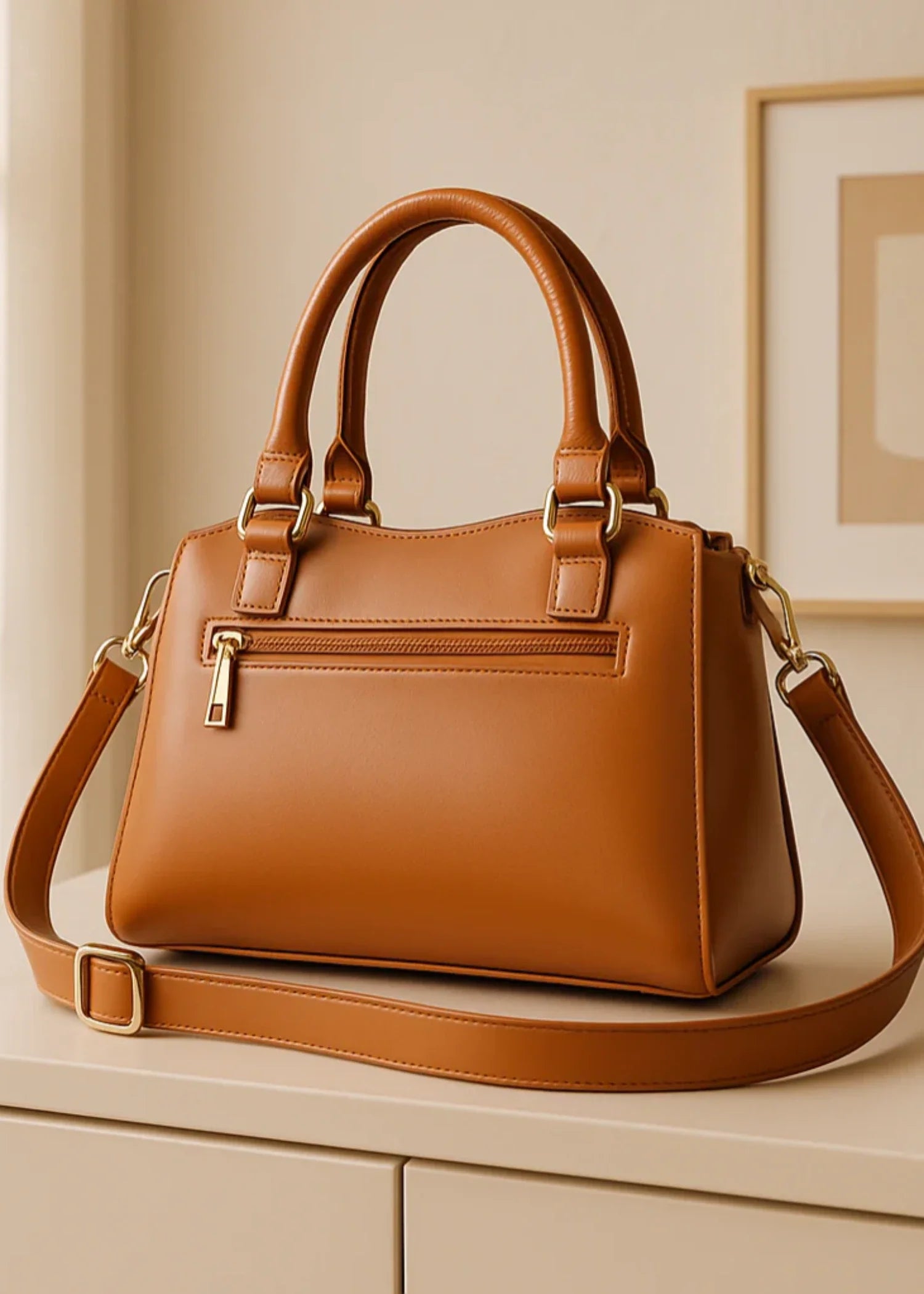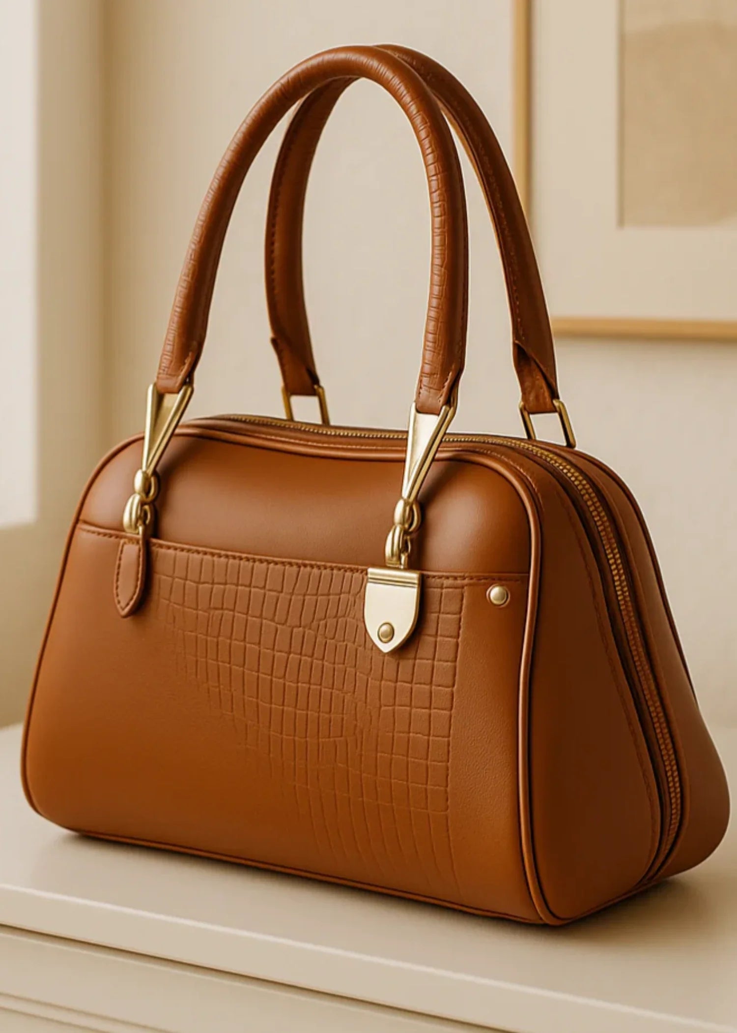 Additional Description: Discover timeless charm with the Urban Haya Classic Brown Handbag where simplicity meets everyday sophistication.Designed in a rich, versatile brown tone, this handbag adds warmth and elegance to any look. Whether you’re heading to work, running errands, or meeting friends, this bag is the perfect blend of style, space, and convenience.Its structured shape, smooth finish, and subtle gold accents give it a polished appearance, while the spacious interior keeps your essentials organized with ease.n