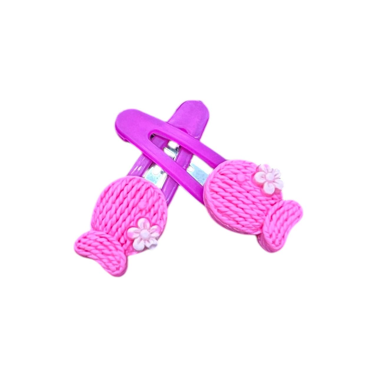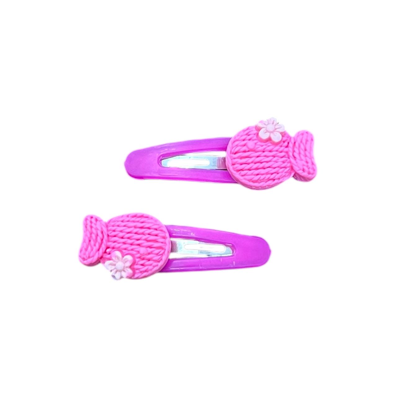 Kids’ Knitted Candy Shape Hair Clips Set of 2 Pink Pins