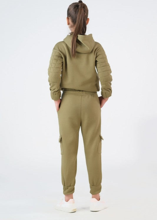 Quilted Panel Hoodie With Jogger Pants – Mint Green